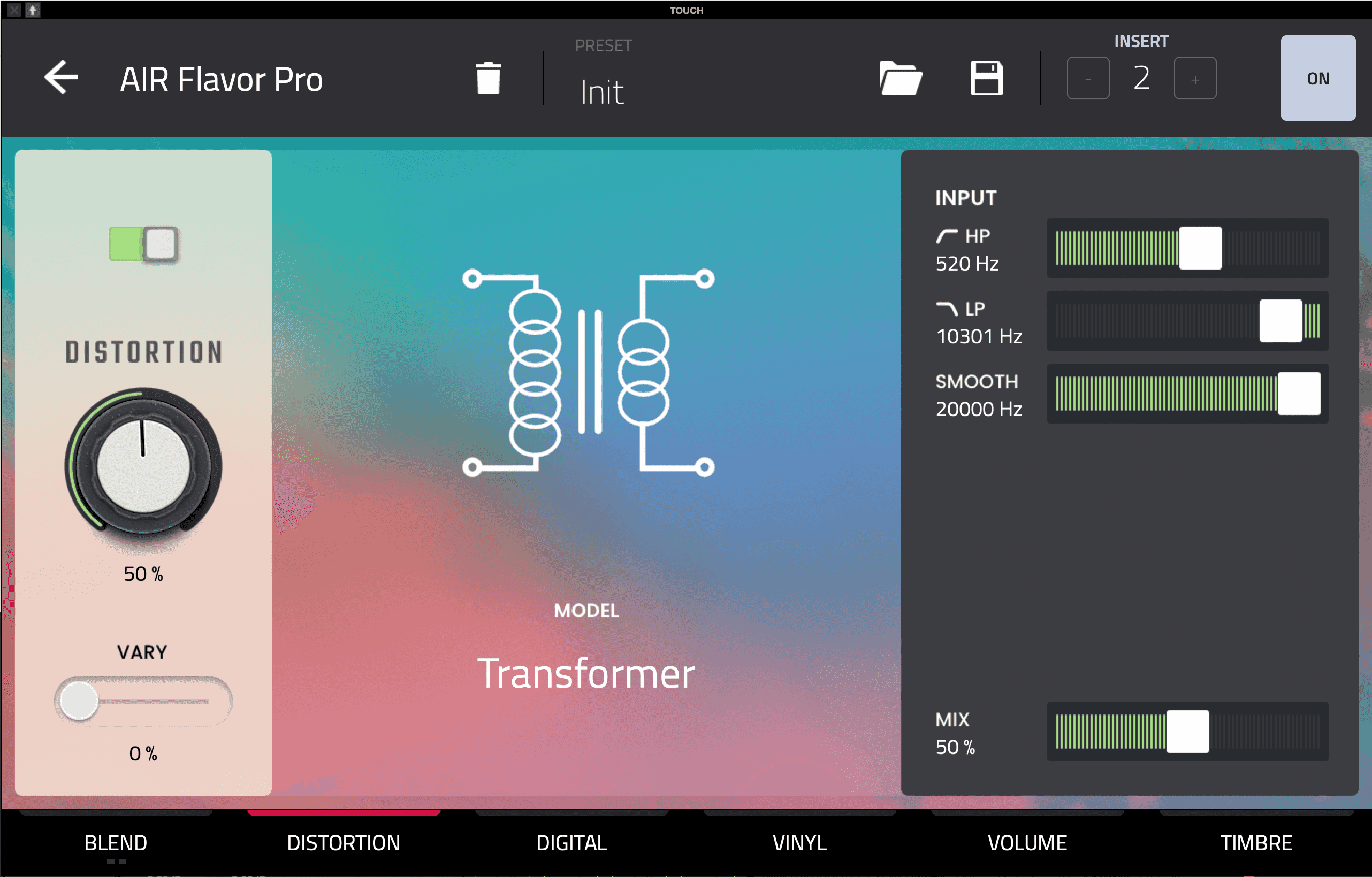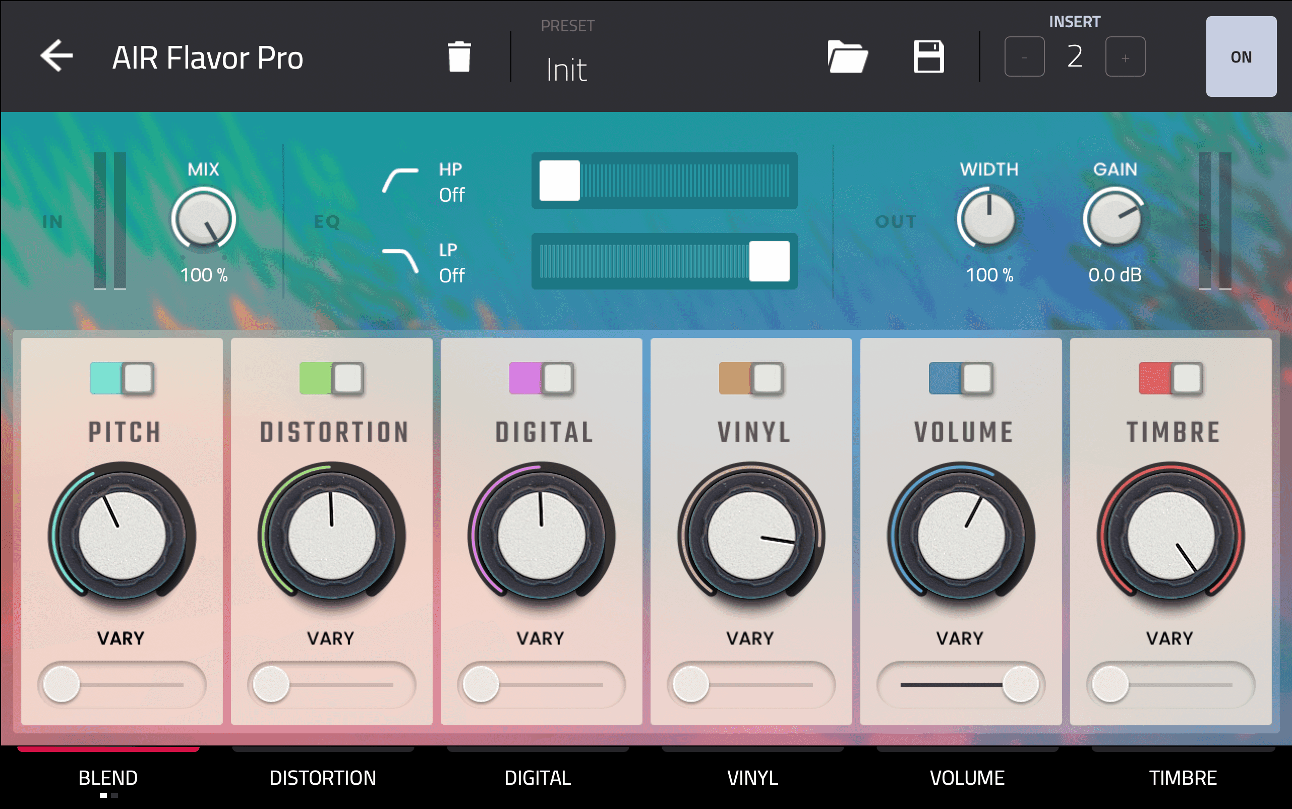 Add the vintage magical sound of analog saturation warmth, noise, and distortion. With nine models including Tube, Speaker, Vinyl, and Synth emulations, plus HP/LP Filter, Mix, and Vary Controls.
