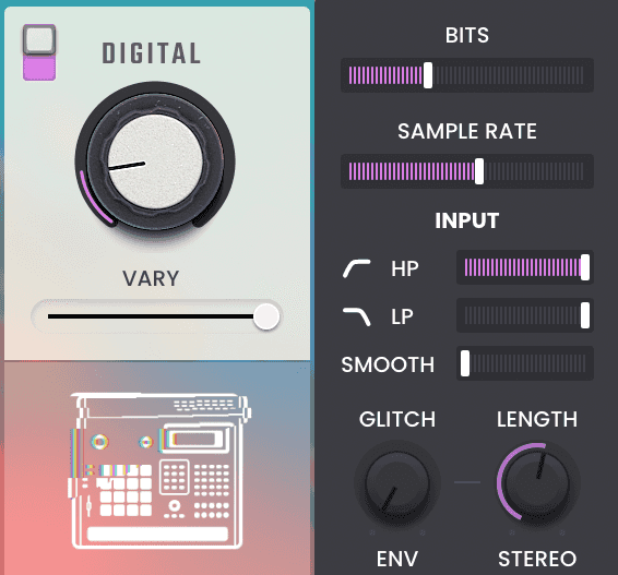 Recreate the iconic lo-fi sound of vintage and classic old-school Akai MPC and S Series Samplers to VHS and cassette tapes. With dedicated bit crushing and sample rate reduction controls to color your sound. Also includes HP/LP Filter, Smooth, Glitch, Length, Envelope, Stereo and Vary Controls. The Flavor never stops!