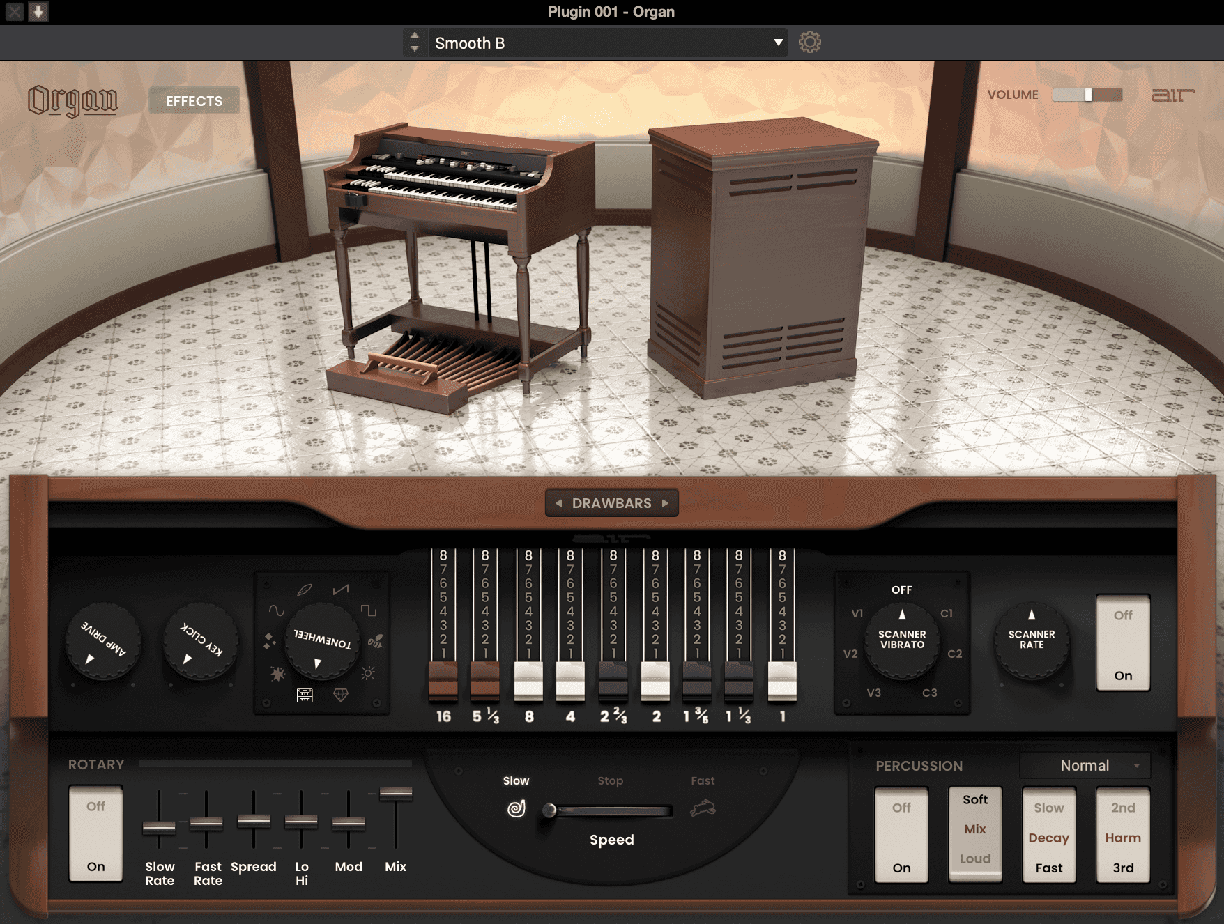 The AIR Organ instrument brings you a rich, expressive experience built inside a stunning user interface. The AIR Organ also includes a robust collection of built-in FX from authentic scanner vibrato and drive to the AIR rotary speaker emulation, all with controls designed to make editing easy. From gospel to jazz, funk to R&B, ballads to reggae, the AIR Organ will add organic magic to your music.