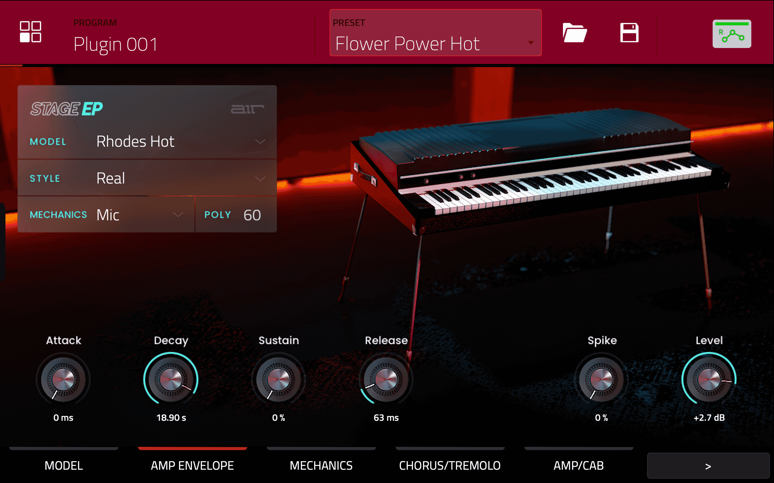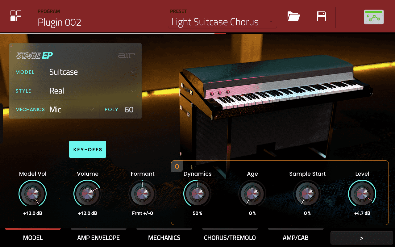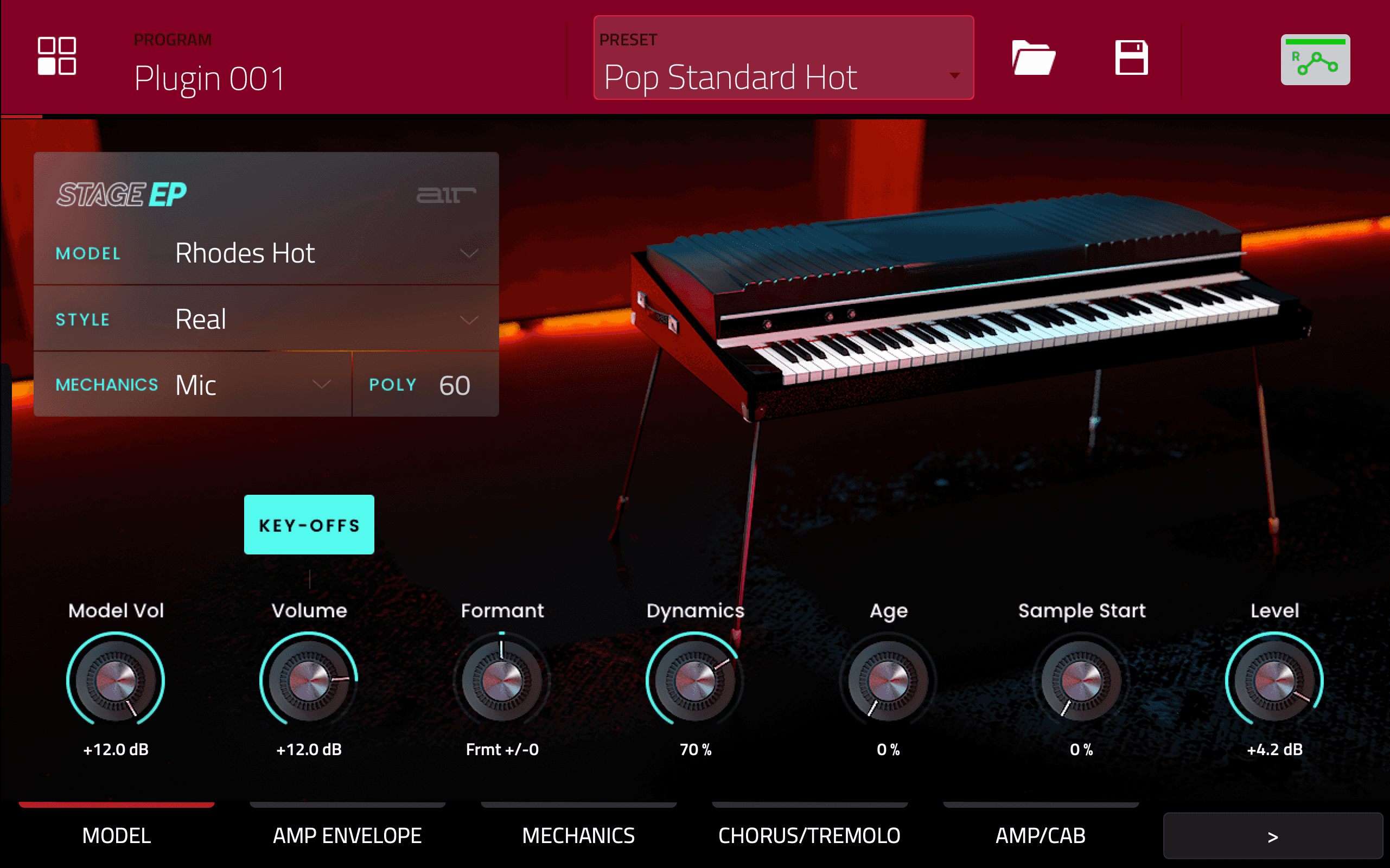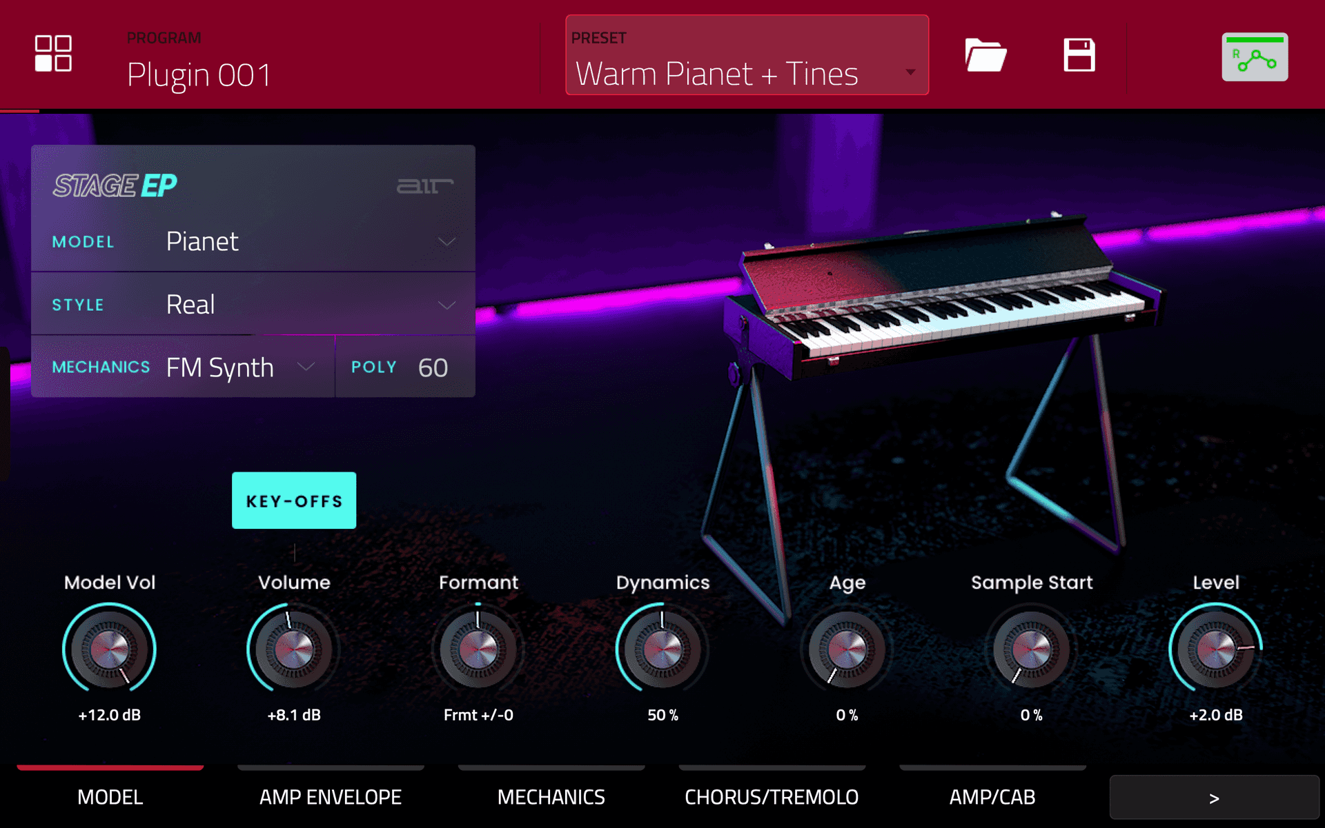 Stage EP includes multiple effects like Flavor timbre control, EQ, amp and cab simulations, compression, rich reverbs, delay, and modulation. Create brilliant shimmers, dark haunting echoes, or spacey washed electric pianos with a cutting-edge effects engine built right into the instrument.