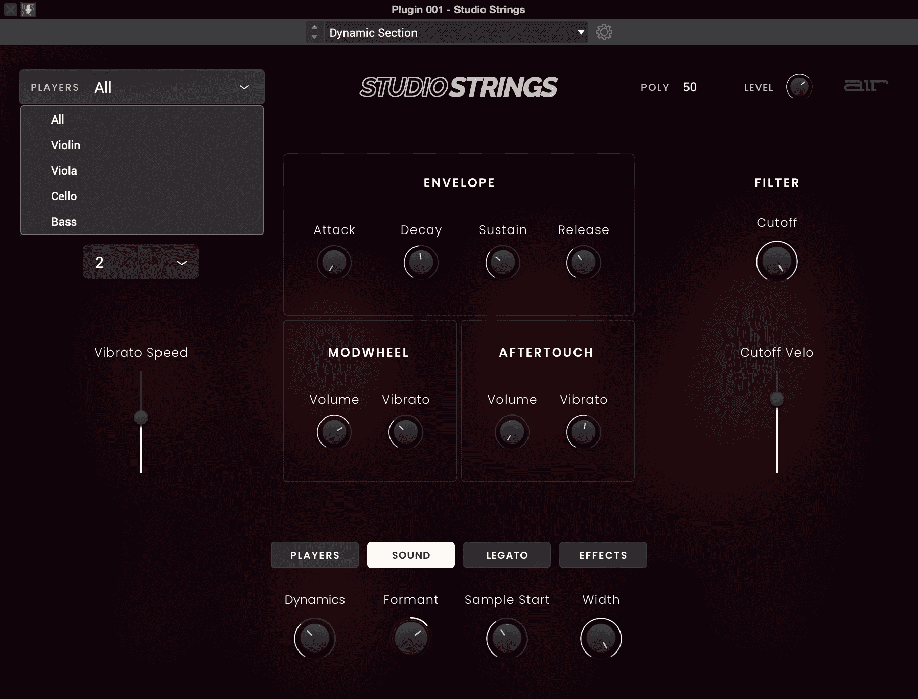 Studio Strings lets you adjust everything from dynamics, envelopes, vibrato, aftertouch, and the speed and length of legato glides. Studio Strings also includes a powerful FX engine allowing you to modernize the sounds with effects like EQ, filter, reverb, and delay.